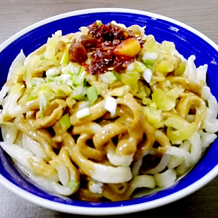 中午剩的面,即兴发挥做的热干面,除了面不太像,味道真是棒棒哒!