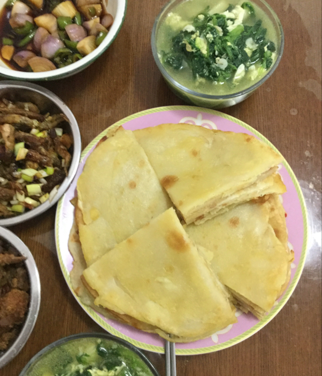 2016年4月20日,菠菜汤烙饼。