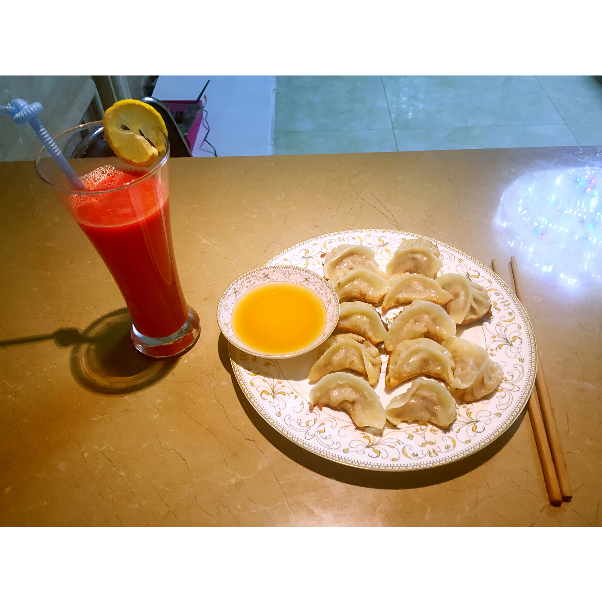 煎饺配西瓜汁