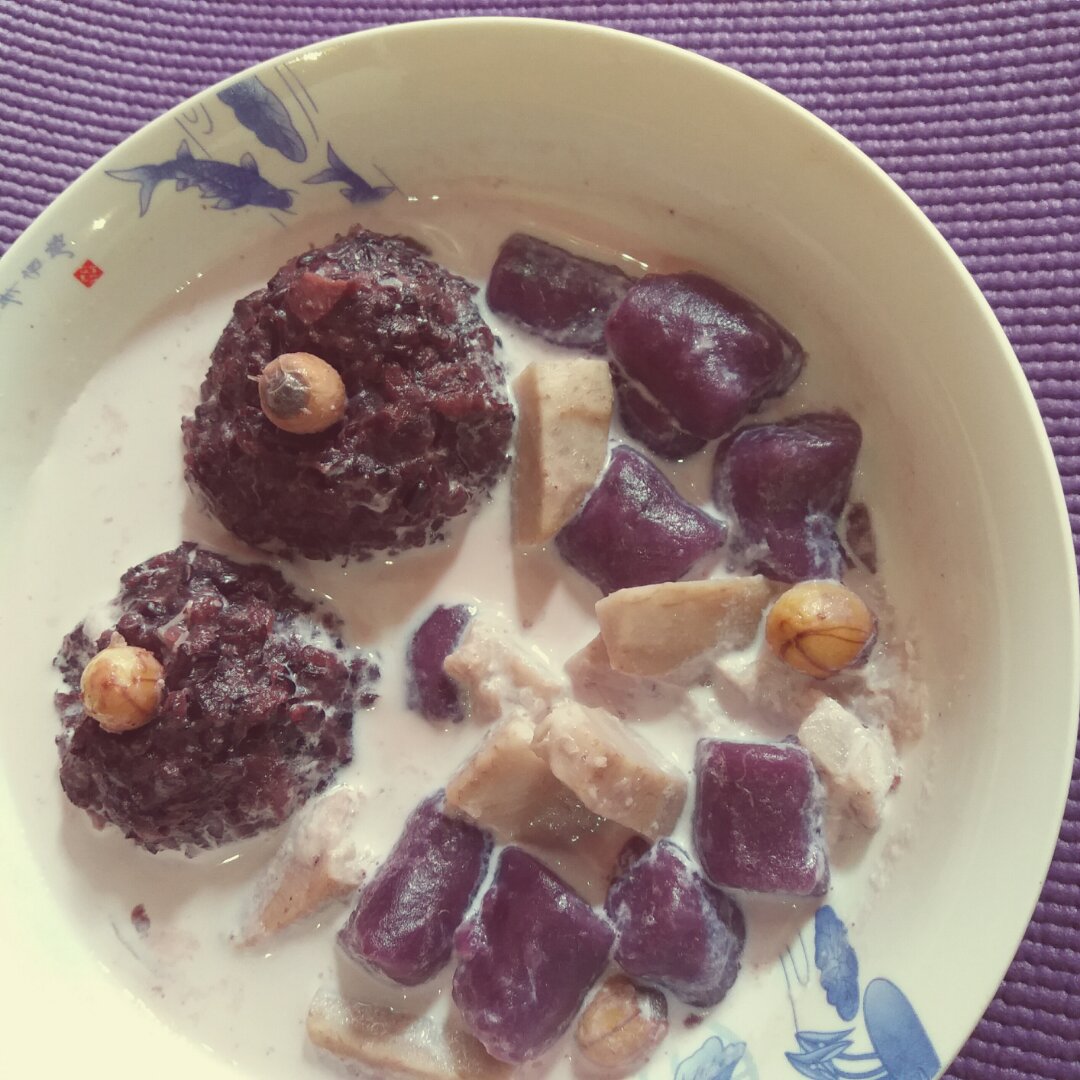 ※鲜奶莲子双雪芋圆※加了香芋和黑糯米~奶香味更浓郁~
