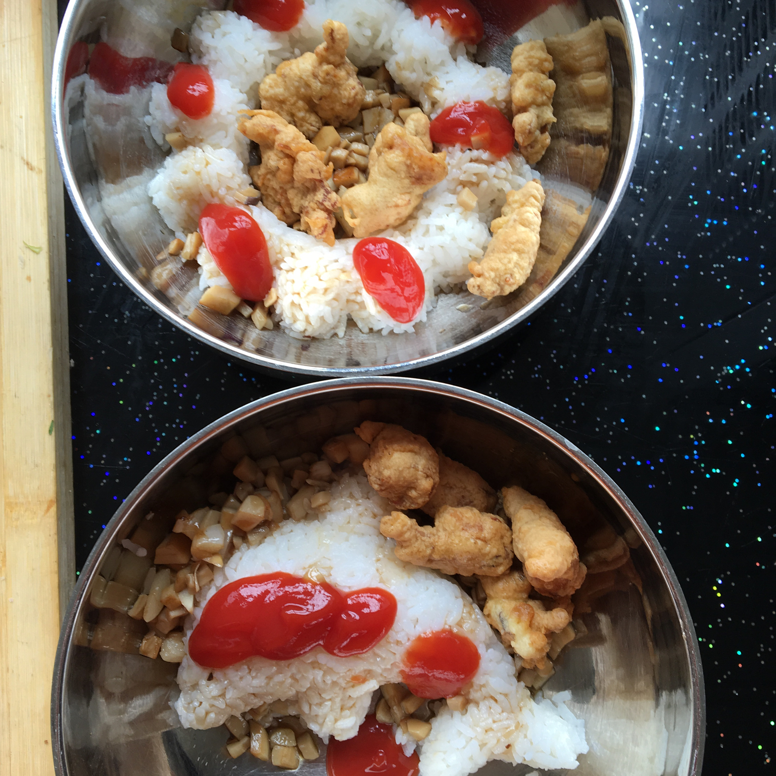 炸鸡块和杏鲍菇丁