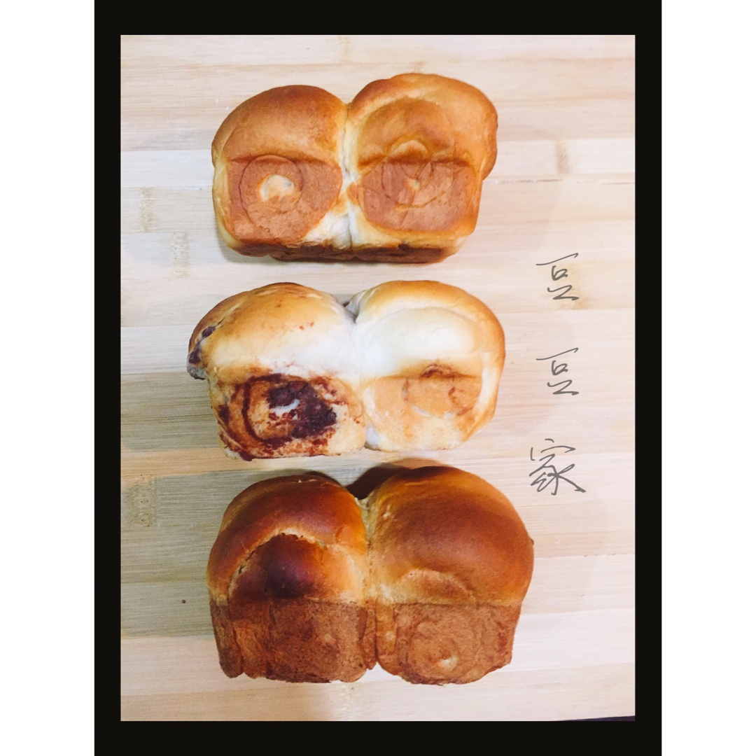 甜味儿豆豆家 做过 最好吃的吐司~70%中种北海道 40weeks 2 days;睡觉之前又做好了三个小吐司~夹心都不一样~娃依旧很老实~明天再揉一个~大家good 呼呼啦~晚上拍照真不好看[流汗][流汗][流汗] #晚餐•2016年5月2日##甜味儿甜品# 2016-05-02