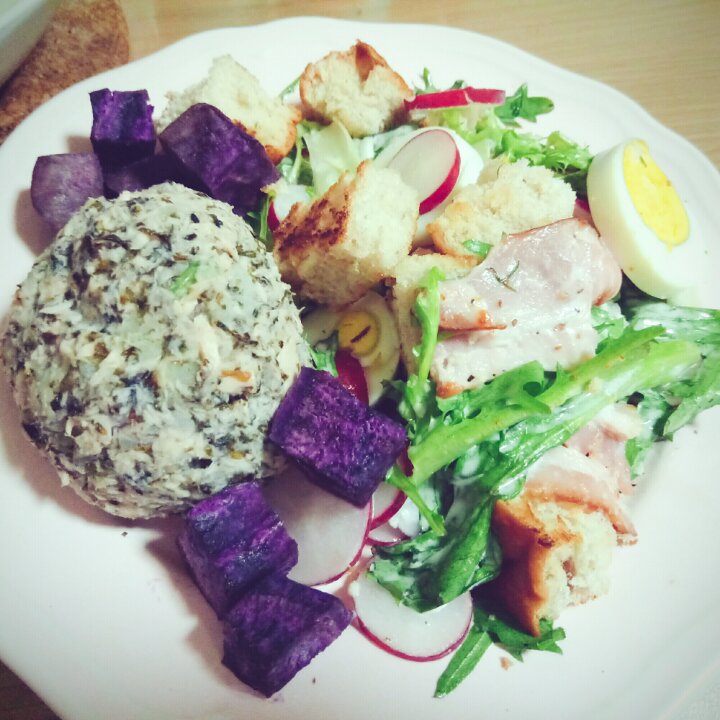三文鱼土豆沙拉+培根凯撒沙拉!