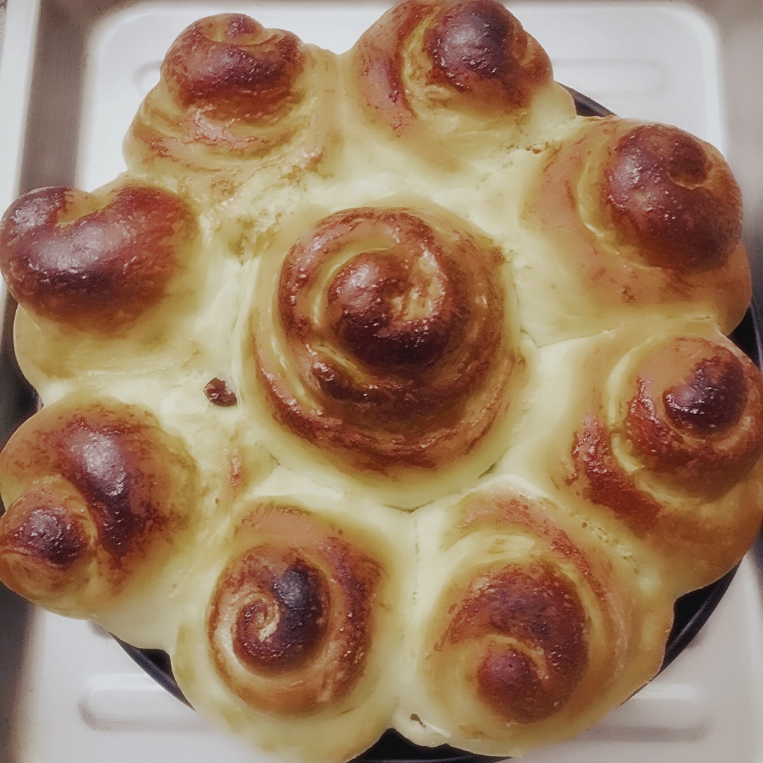 按方法做的,外焦里嫩,有股奶香味,摆出这样图案犹如一束盛开的花朵,让你舍不得吃呢!