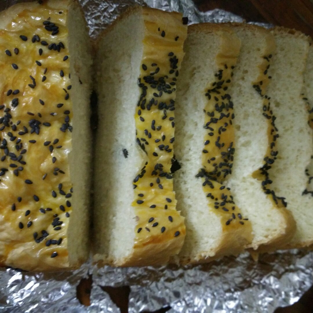 我也做了一个撒了芝麻的,沾奶酪特别好吃。