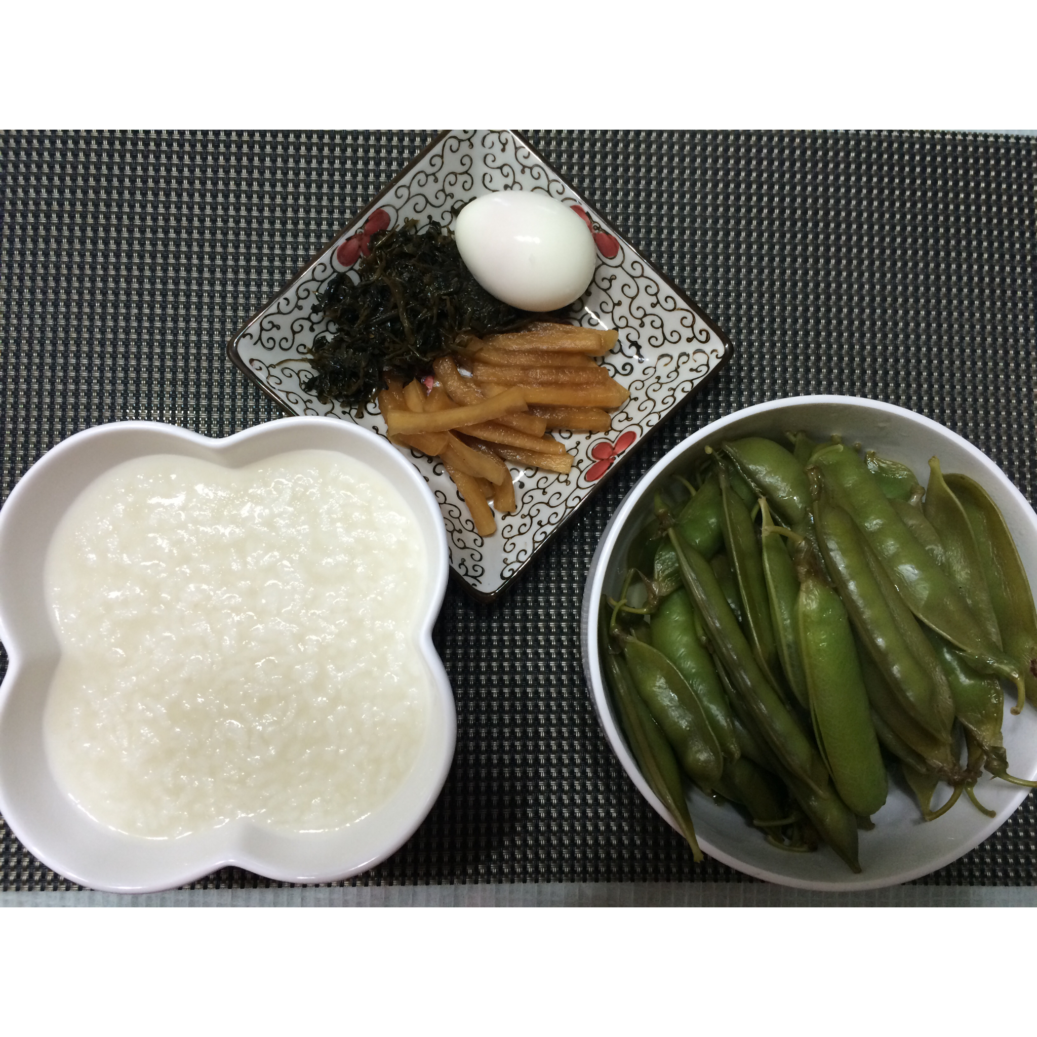 粥似乎是平日的标配。时鲜的小青豆,很好吃呢!