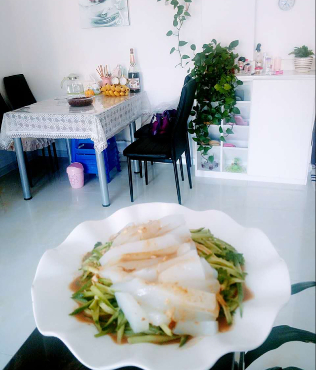 用了香醋、麻酱、一滴麻油、大蒜、盐…味道没得说