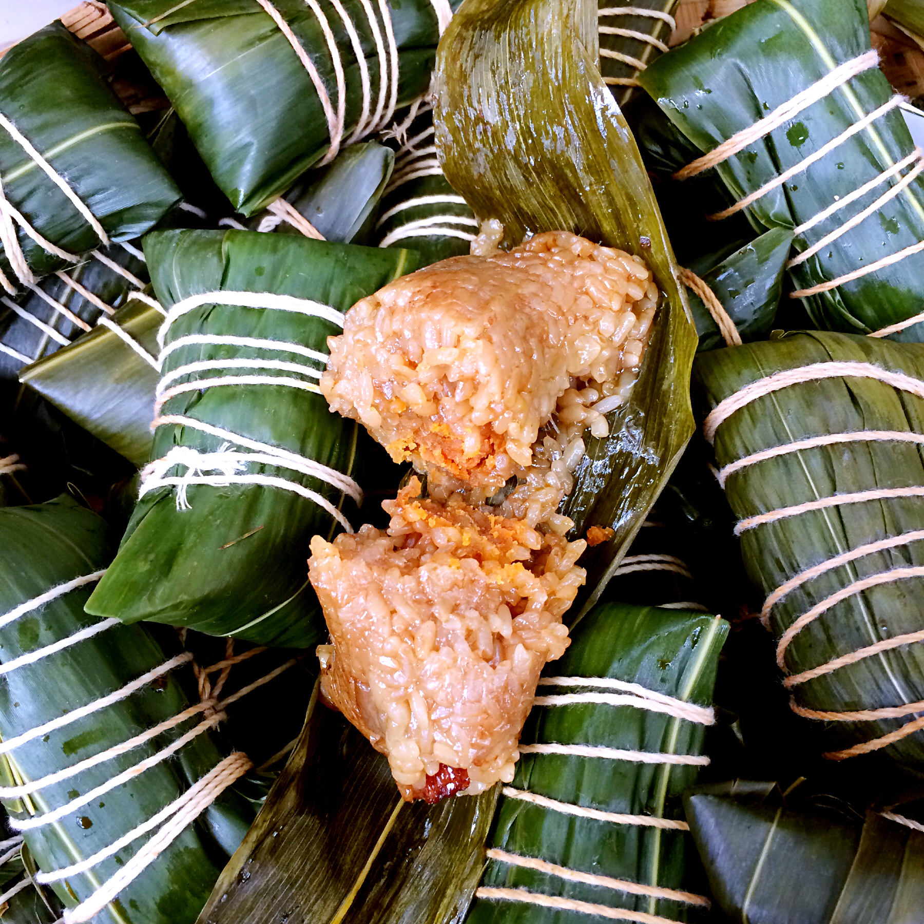 咸蛋黄肉粽,包了近100个,送人一大半,包了一早上。好吃!