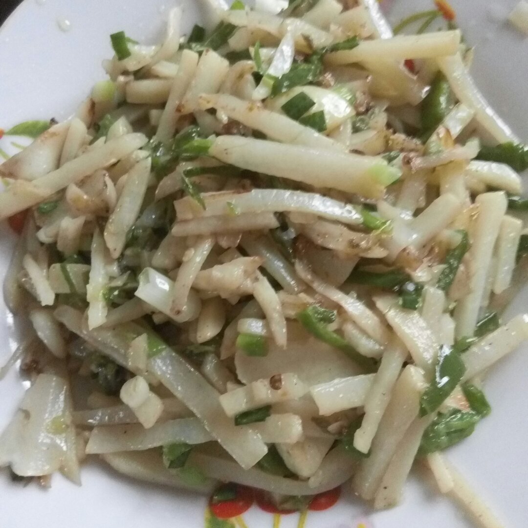 嗯~我觉得,还是刀功问题,切的粗短不均,呵呵,还需练习啊。。。😁😁😁