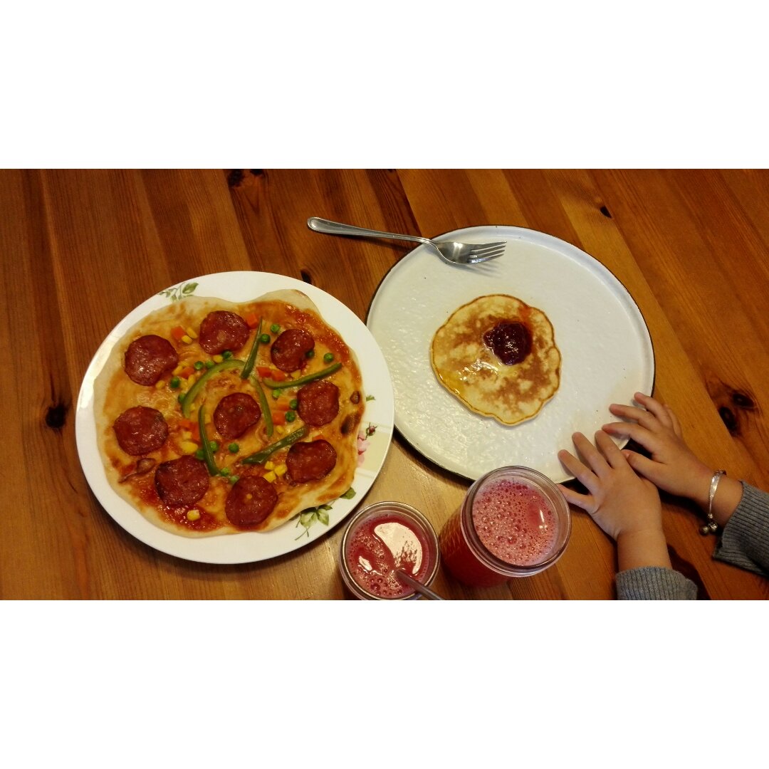 快手披萨,香蕉松饼,西瓜汁