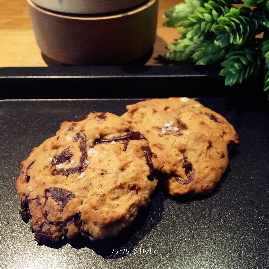 咖啡的涟漪 做过 PH海盐巧克力大cookie 简直好吃爆了啦!按配方的量做了35克左右的16块,烤盘挤满了,多出来的饼干糊做了5块mini的。170上下火,大概12分钟就上色很美啦,没有干干的,海盐是绝对的亮点,一定一定不能少! #早餐•2016年6月13日# 2016-06-13