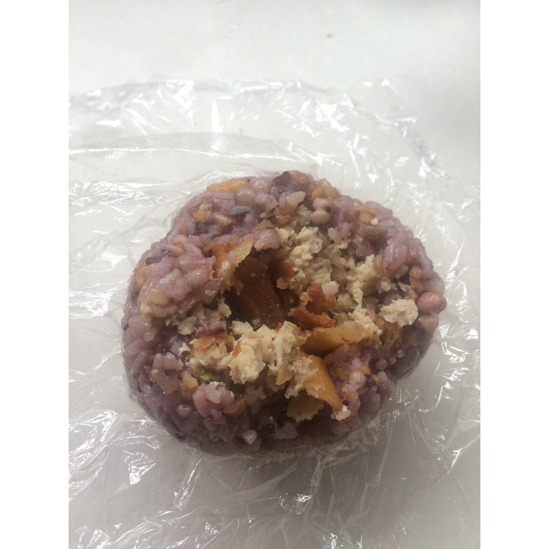 喵ω恶人斩皇后 做过 晚餐•2016年6月18日 粗粮兹饭团。。。用烧的杂粮饭包的,里面是压碎的老油条、榨菜末、没吃完的肉饼炖咸蛋的肉碎。。。要是有肉松就好了。。。 #晚餐•2016年6月18日# 2016-06-18