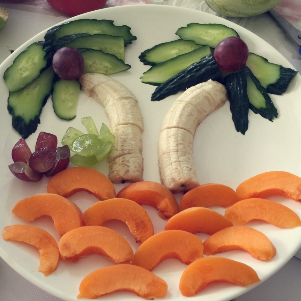 参加亲子活动和儿子一起做的水果拼盘,椰子树😀😀😁