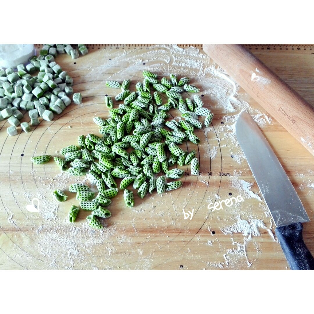 用菠菜汁和的面,本想让不吃菜的孩子吸收一些营养,但是他不吃,哭