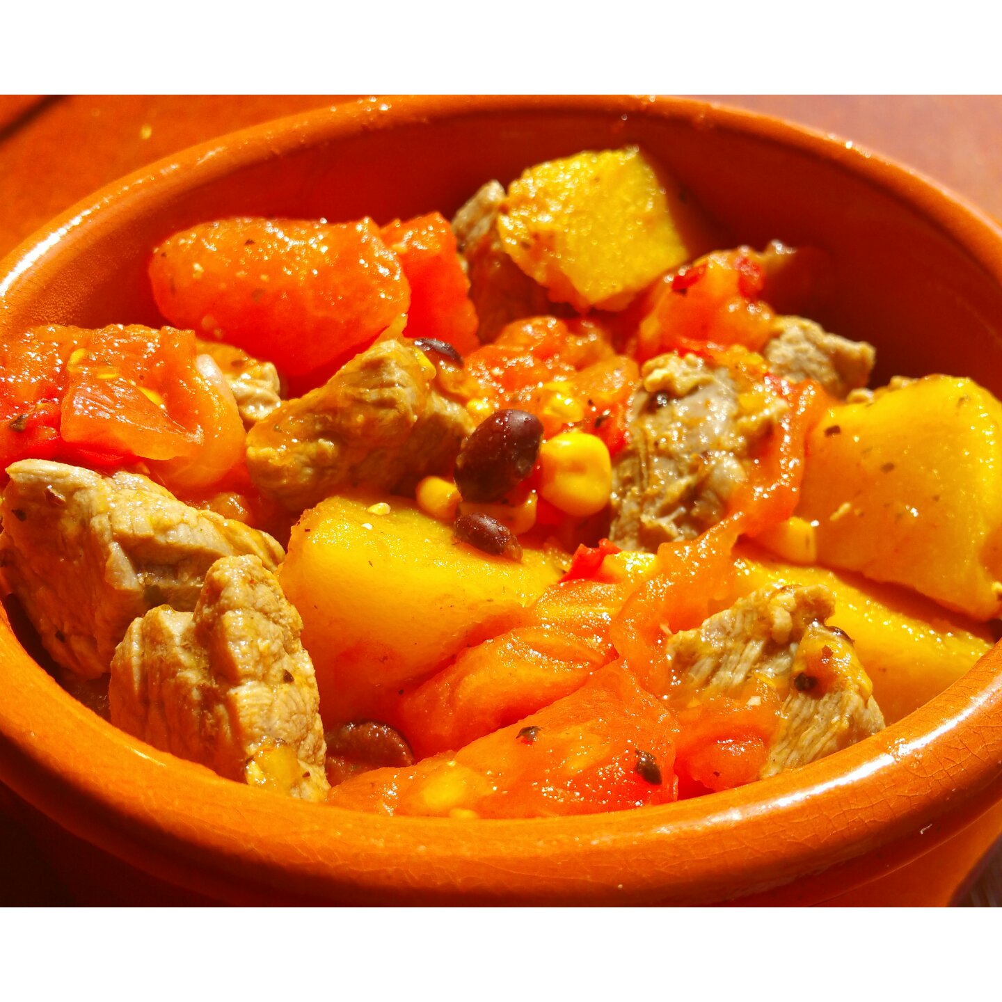 #午餐•2016年7月19日#细羽姐姐前几天做的番茄牛肉,我看着馋于是也做了,然而不知不觉给做成乱炖啦。没用土豆,用的是南瓜,又糯又甜很好吃。调料用的是garlic, onion powder, red bell pepper, black pepper, parsley, mustard seeds, coriander powder, paprika, sea salt 😊我老公不吃牛肉番茄南瓜,图二是给他做的姜汁煎黑豚🐷