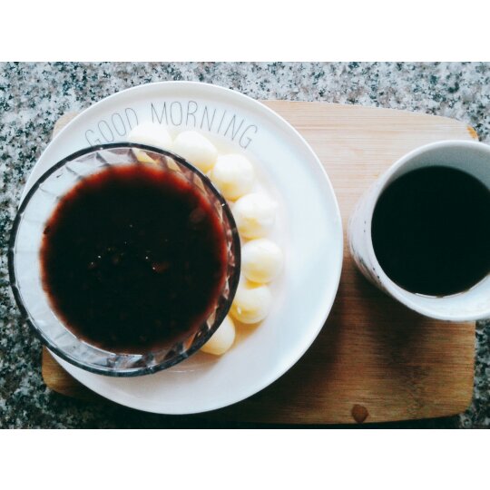 紫薯黑米粥+苹果球+黑咖啡