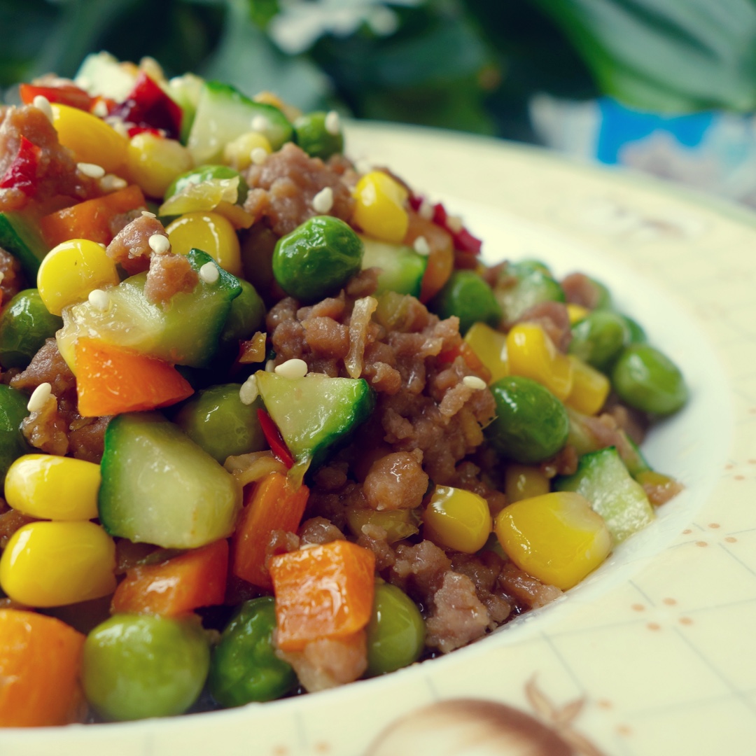 肉末彩丁!就喜爱这样的红红绿绿的搭配😋
