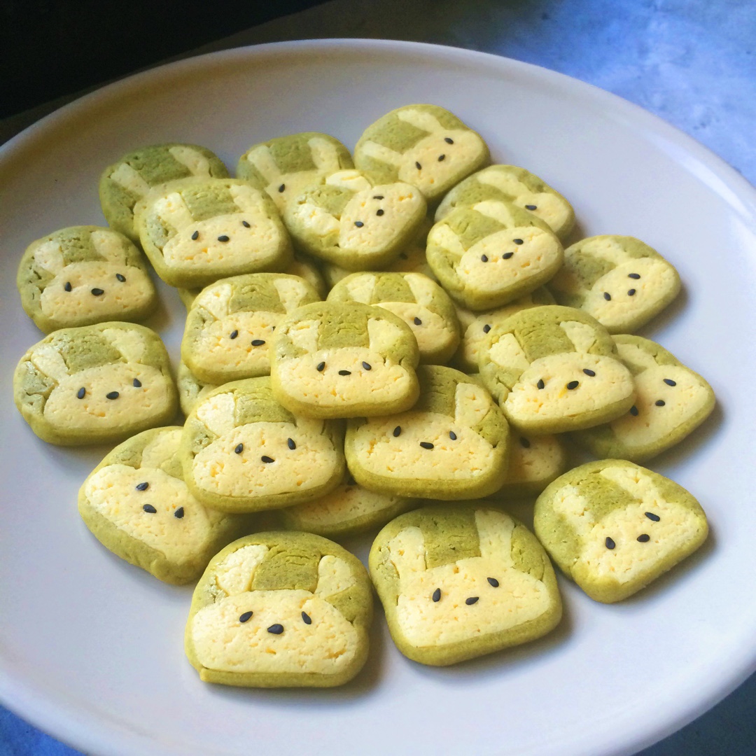 抹茶兔兔曲奇(比熊猫简单!超详细实物图+超良心手绘图)