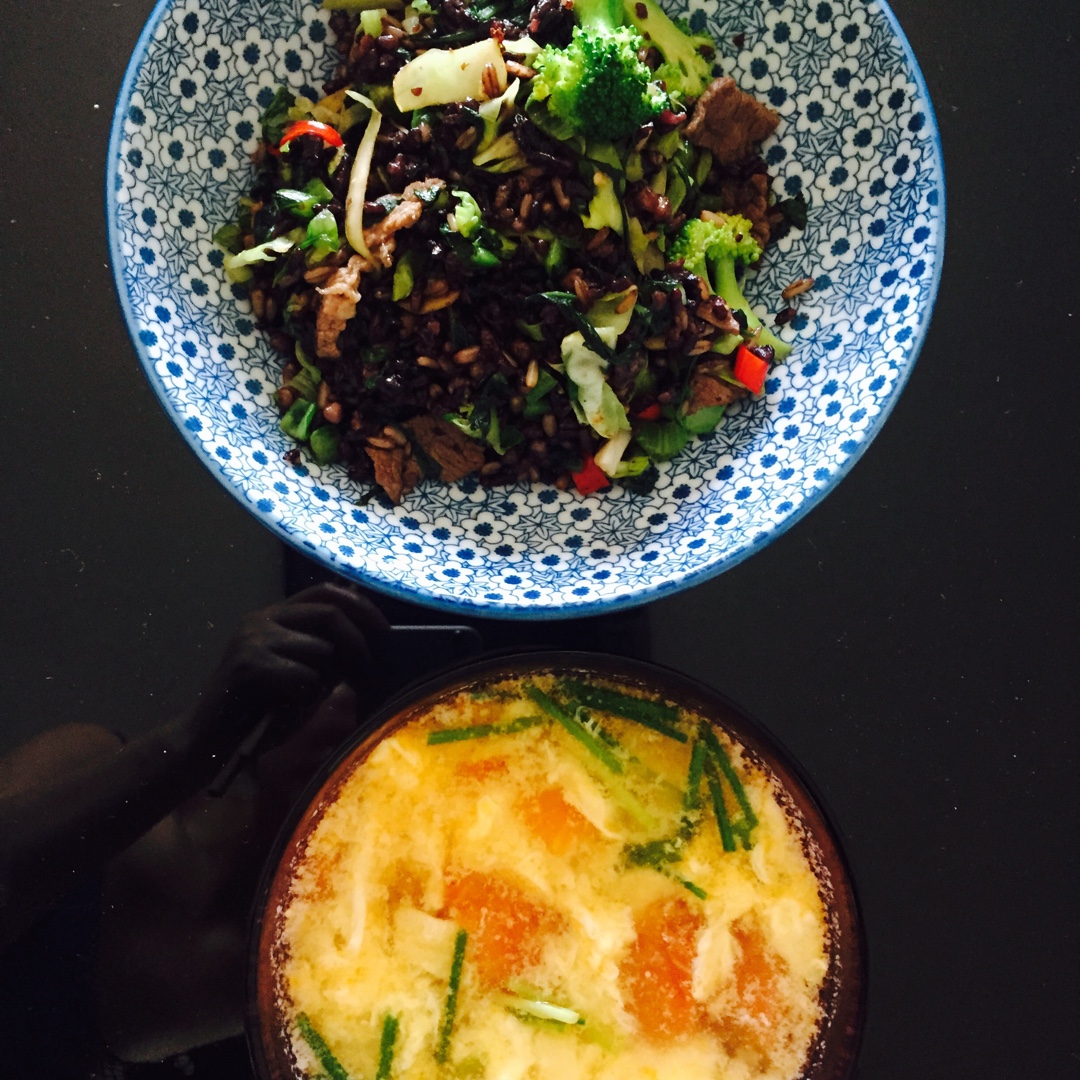 一个人的午餐 牛肉杂粮饭加番茄鸡蛋汤