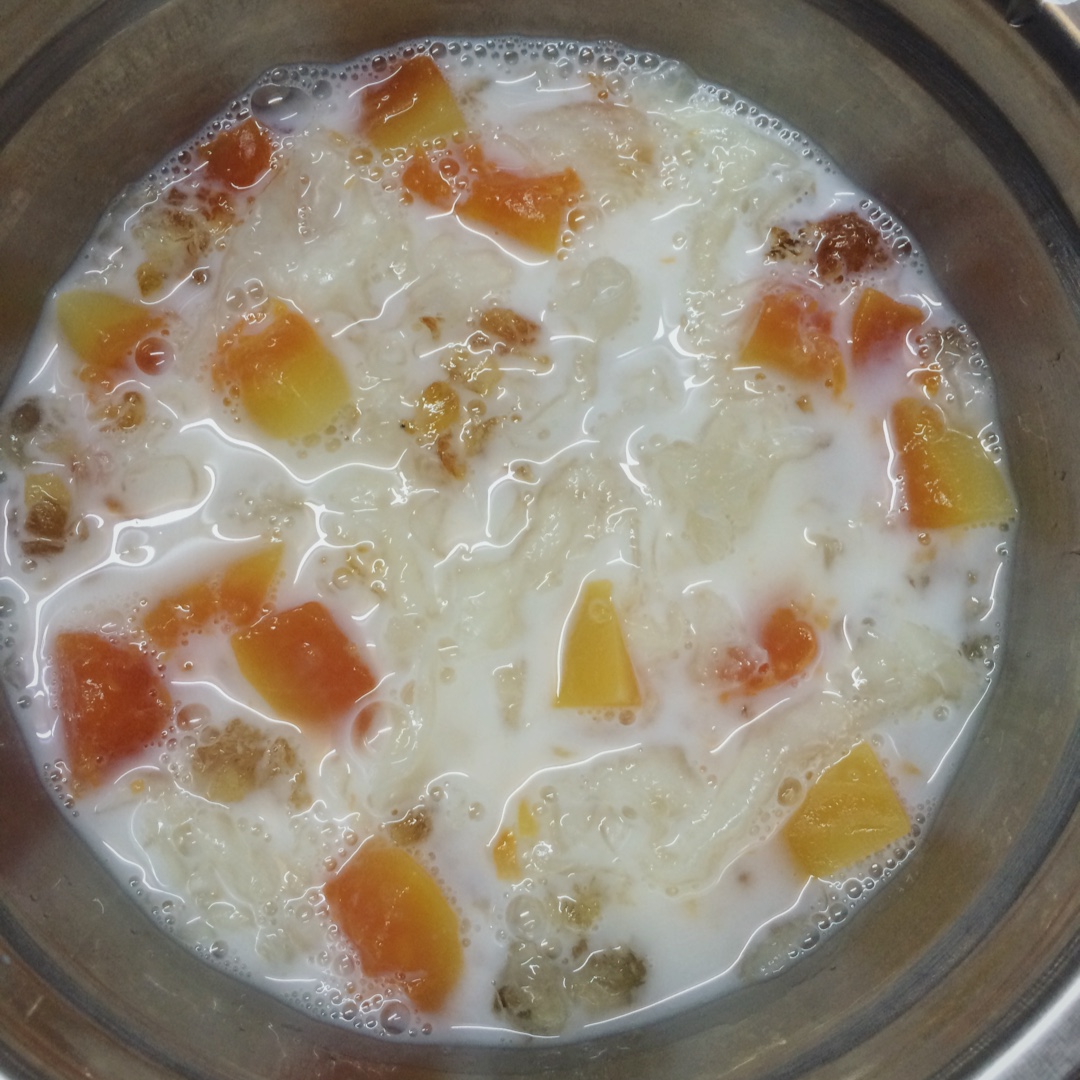 电饭锅版牛奶木瓜桃胶炖雪耳