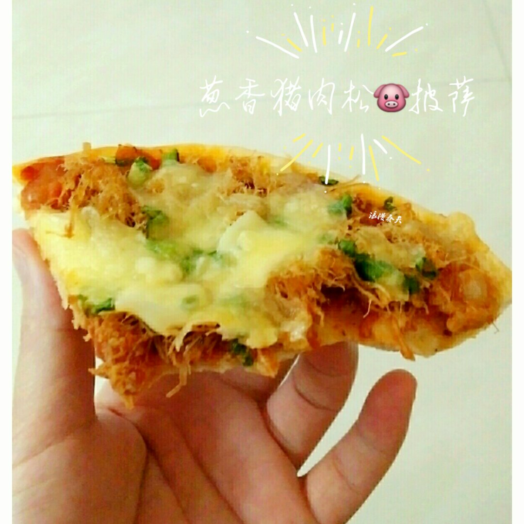 早安!简单快手早餐,葱香猪肉松🐷披萨~烤满屋飘香😄