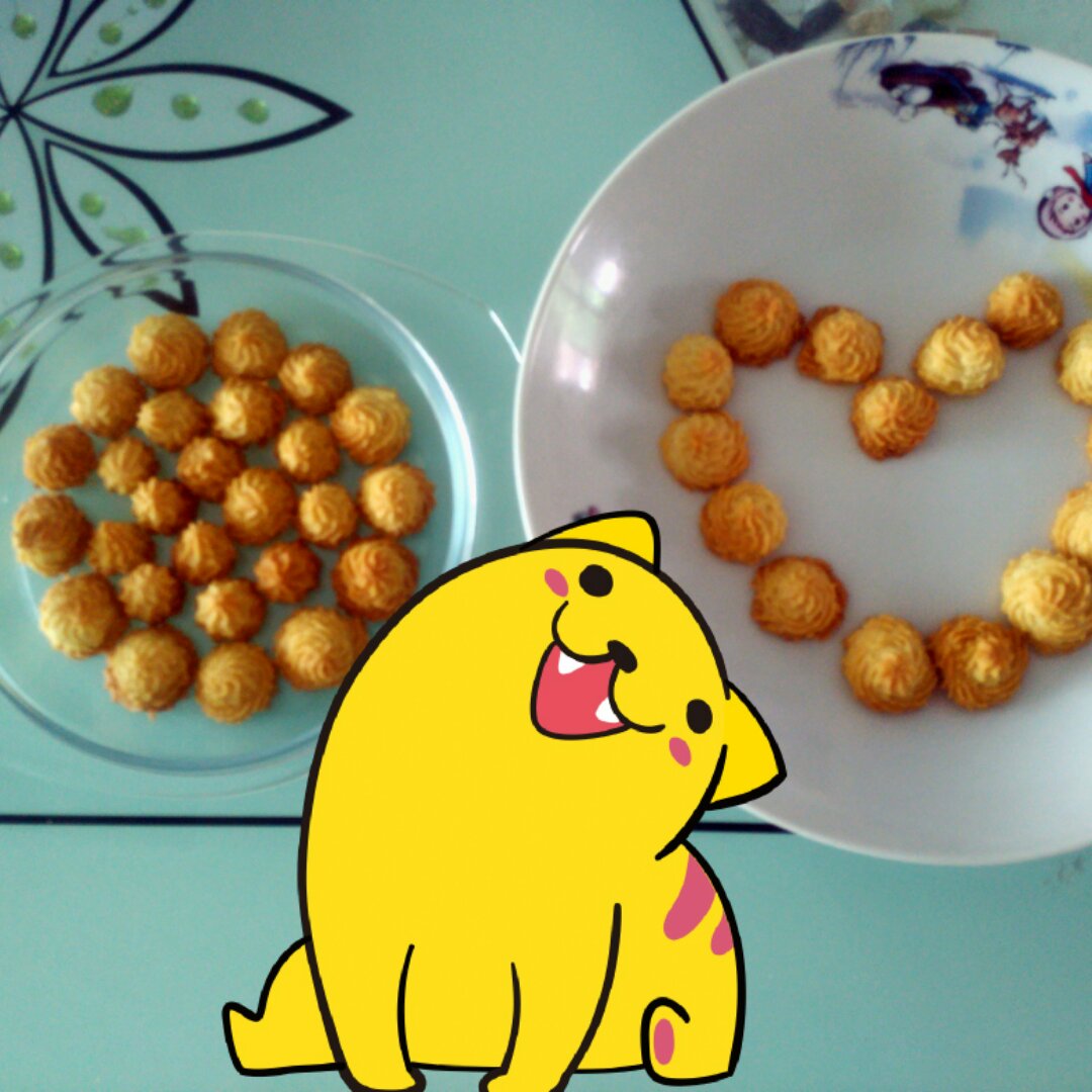 第一次做曲奇,奈何手残😂 挤的太丑了~味道可以~就是我喜欢淡的~下次可以减掉点糖😁
