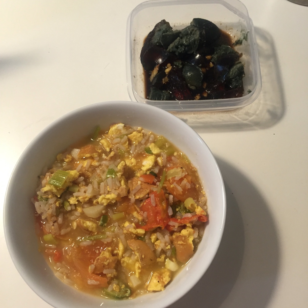 酱汁皮蛋,西红柿鸡蛋汤饭