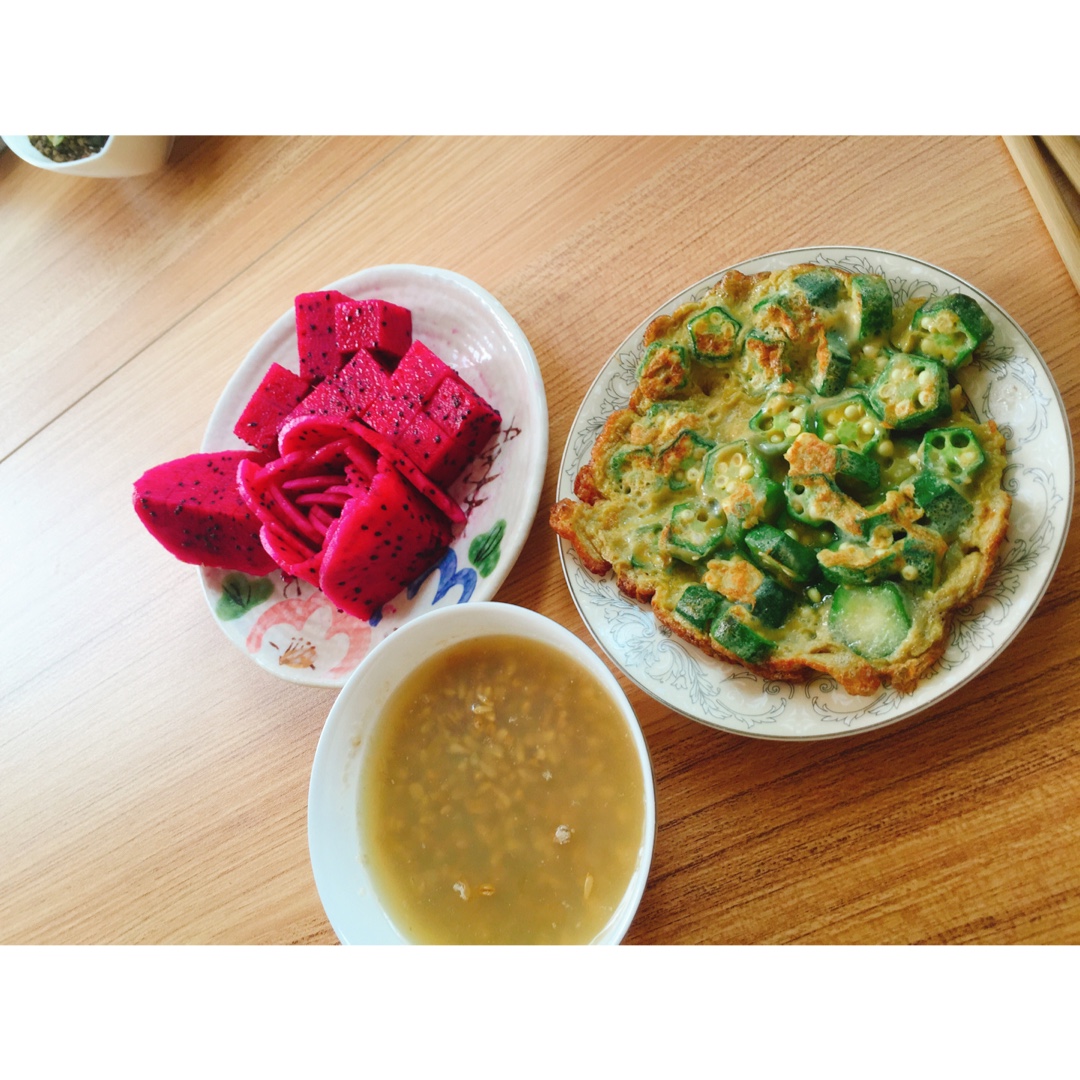 火龙果花❀,秋葵煎蛋,燕麦粥,周一早餐