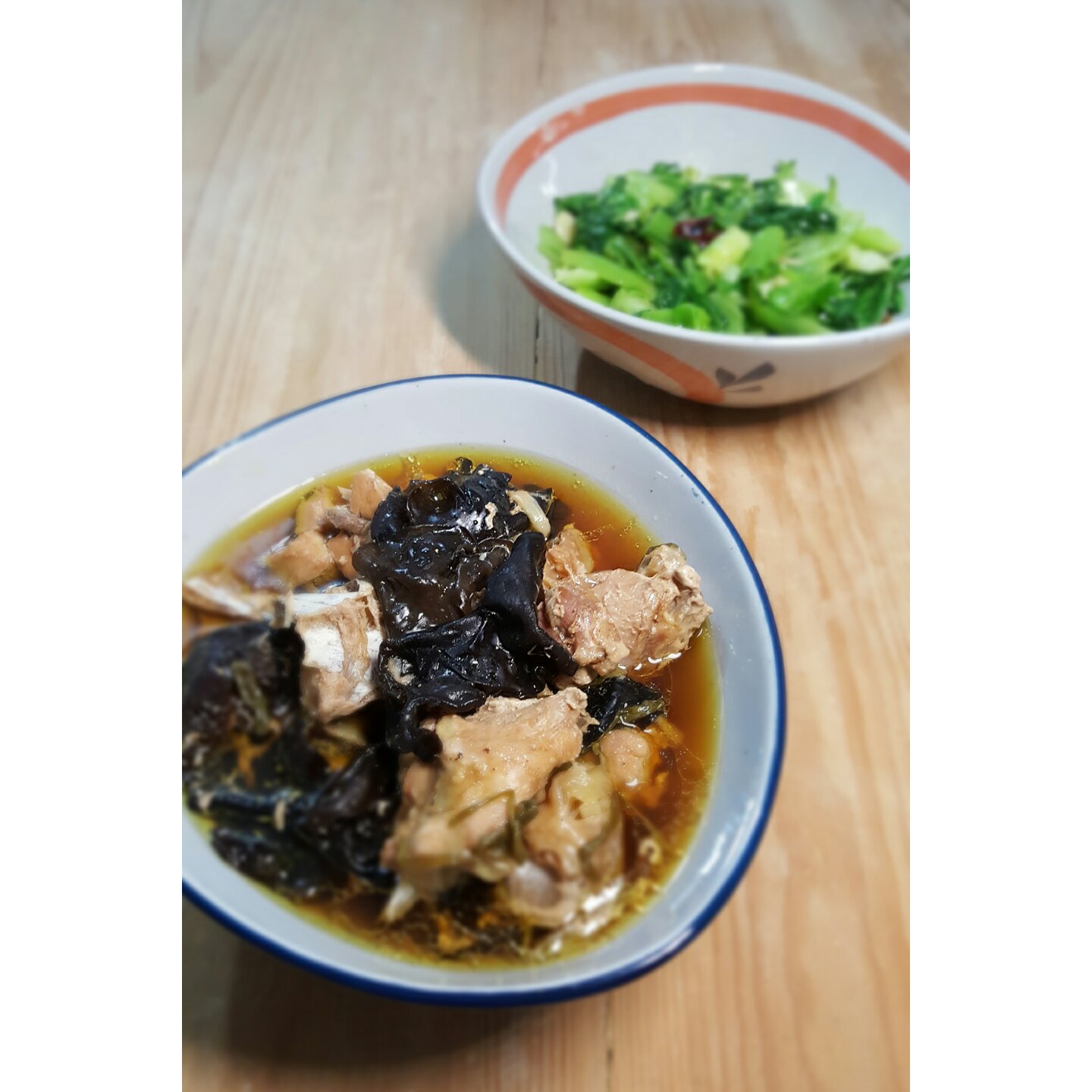 木耳蒸鸡,炒青菜👍👍👍