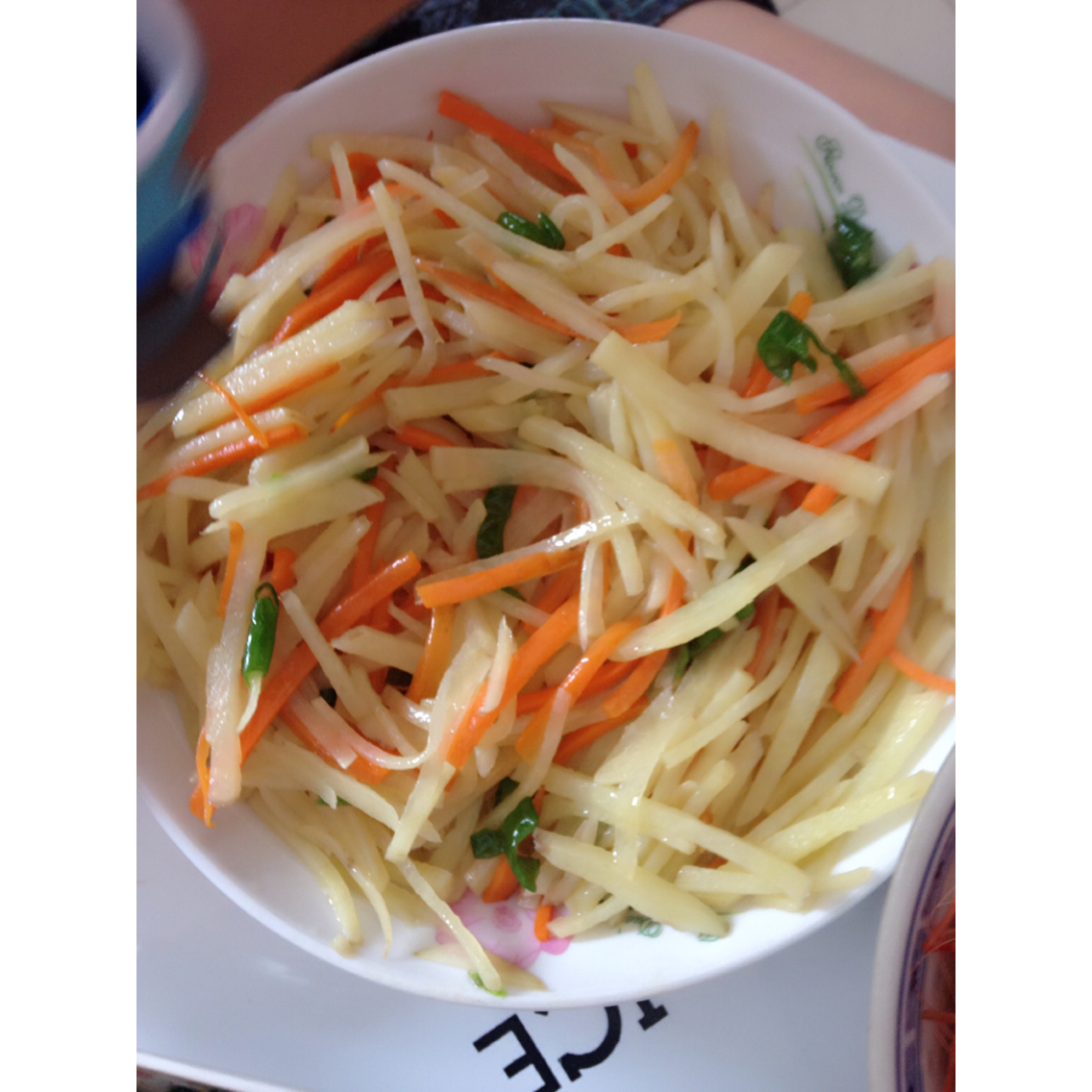 午餐—炒三丝、河虾、螺蛳肉炒韭菜外加一个牛肉丁西红柿蛋汤,哈哈😄