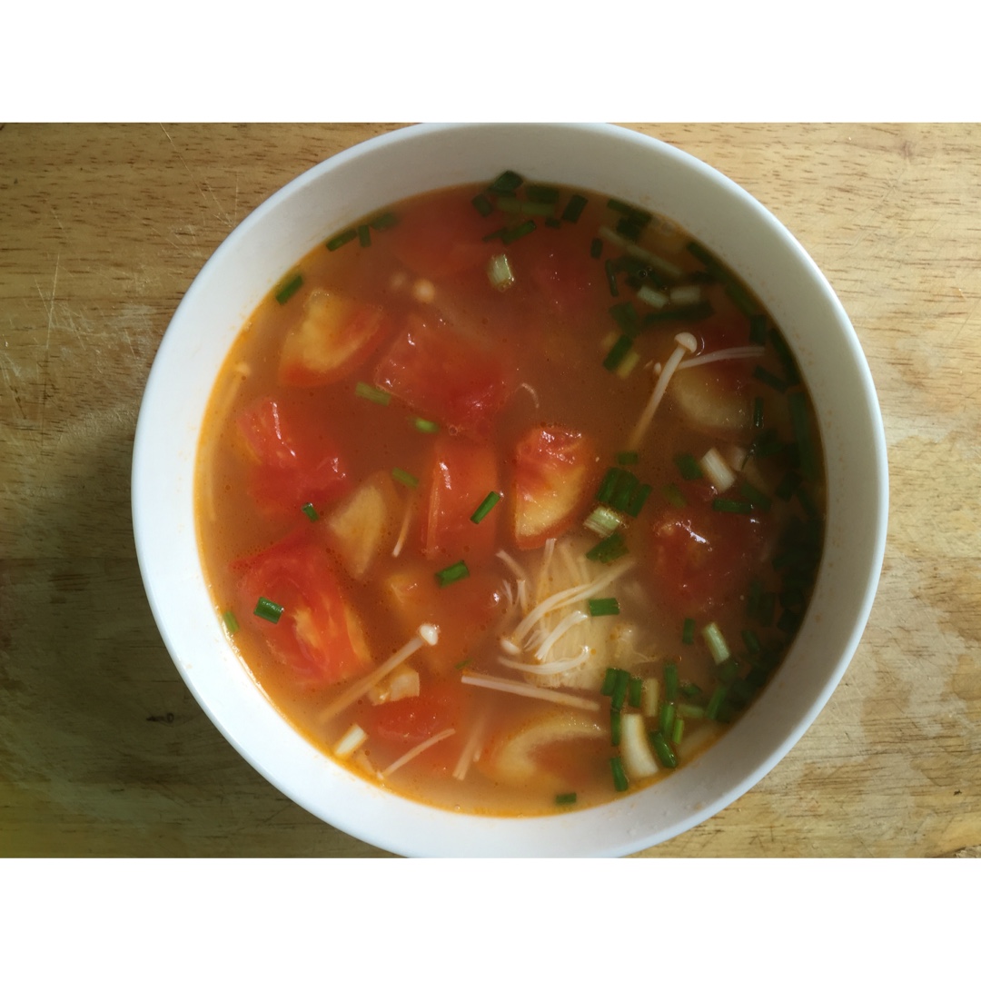 金针菇番茄汤~酸甜里有鲜味,很棒!