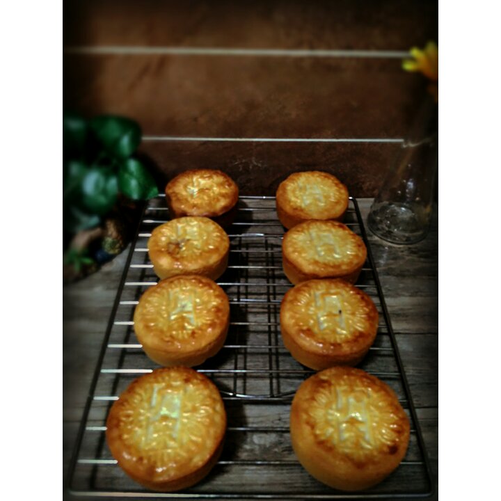 早上好。老式传统广东 五仁月饼。回油后漂亮好吃。😄还是老味道,好吃!😄