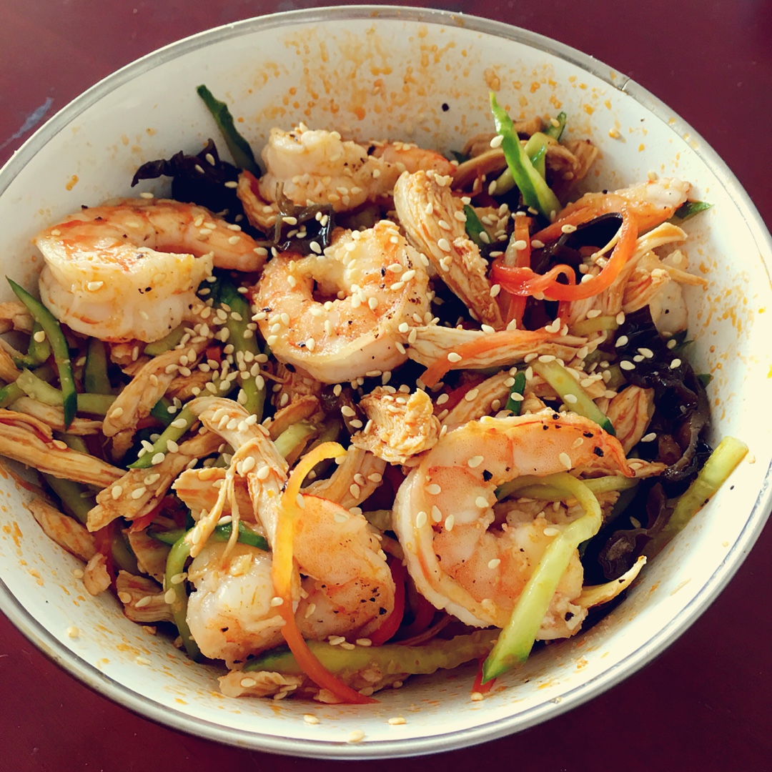手撕鸡丝~又加了些虾,棒棒哒