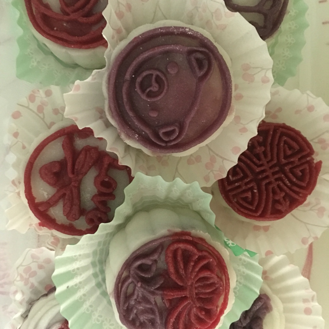 紫薯粉和红菜头粉调的色,豆沙馅儿,下次做奶黄馅。