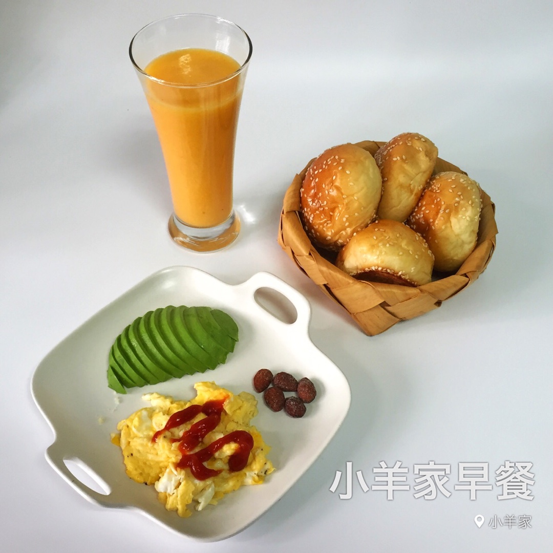 奶糖和小羊 做过 早餐•2016年8月27日 暑假余额严重不足,小羊家早餐要预热起来了。好久不来看到很多好事啊,真要恭喜厨友们了。肉松餐包牛奶炒蛋牛油果黄桃汁 #早餐•2016年8月27日# 2016-08-27