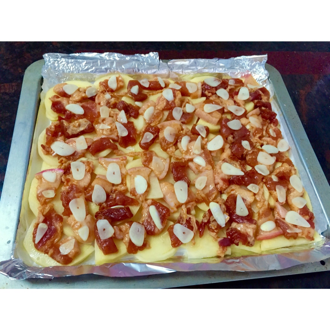 加了薄薄的蒜片,烤得好香