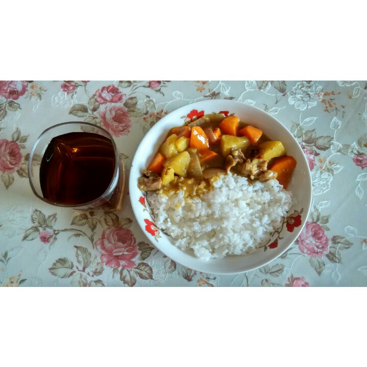 咖喱饭+大麦茶