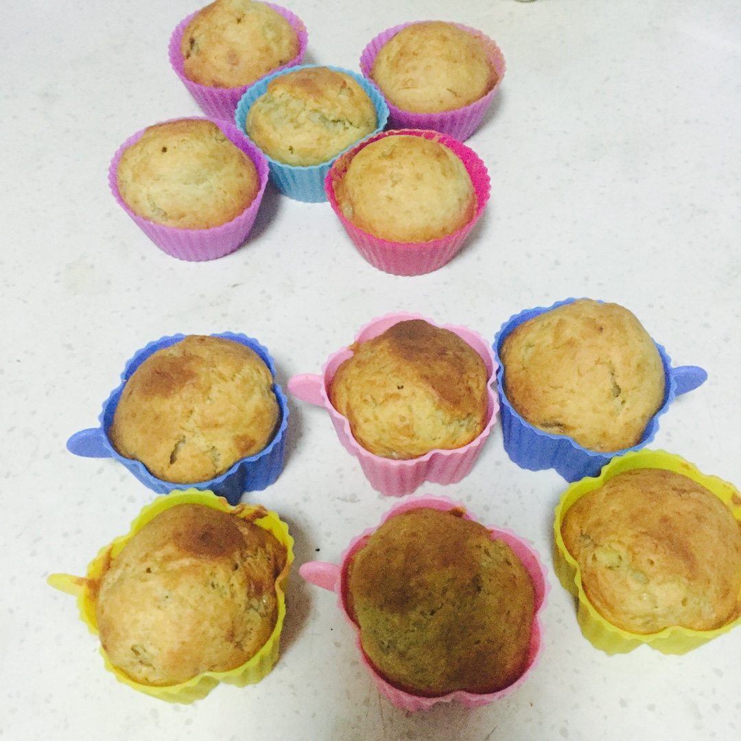 Jessica-HRR 做过 简单香蕉蛋糕 用了方子兩倍的量 做了11個麥芬 180度 上下火烤製25分鐘 沒有加白砂糖 有香蕉和煉乳 夠甜啦 明天給娃的早餐 #晚餐•2016年8月28日# 2016-08-28