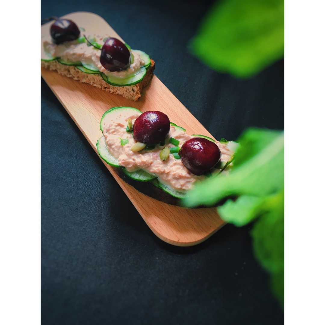缀思克 做过 午餐•2016年8月30日 黄瓜吞拿鱼三文治,吞拿鱼沒有按传统方式用蛋黄酱调味,而是用酸奶、橄榄油、海盐、黑胡椒、意大利黑醋,顶部加香葱、南瓜子、樱桃。輕盈的搭配,頗適合夏天。 #午餐•2016年8月30日##清淡但有单纯食物滋味##调味小技巧# 2016-08-30