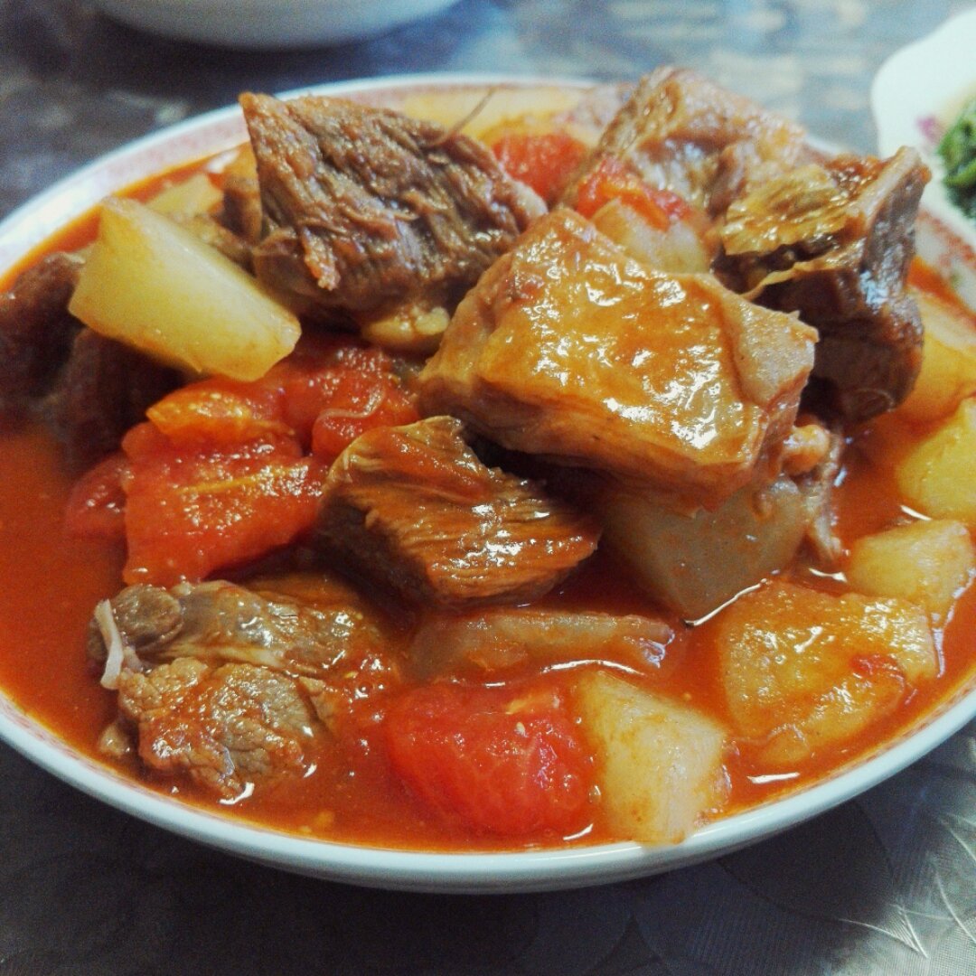 妈妈做哒,番茄牛腩,炒小白菜,吃饭咯!