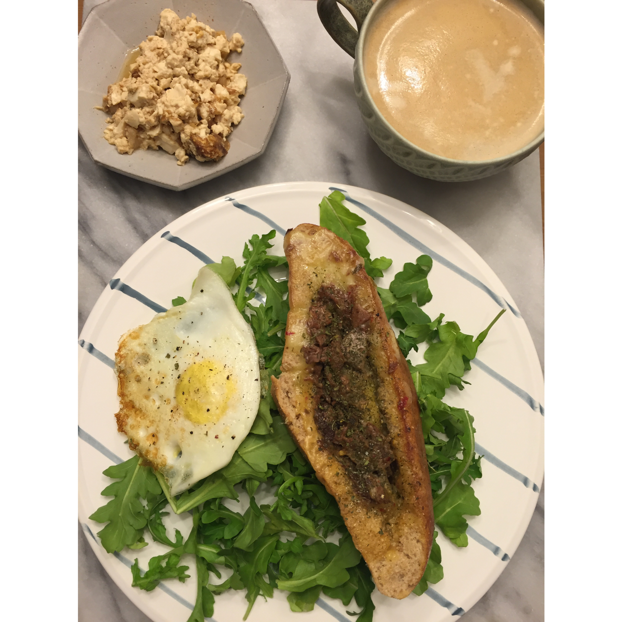 面包加牛肉和芝士 煎蛋 芝麻菜