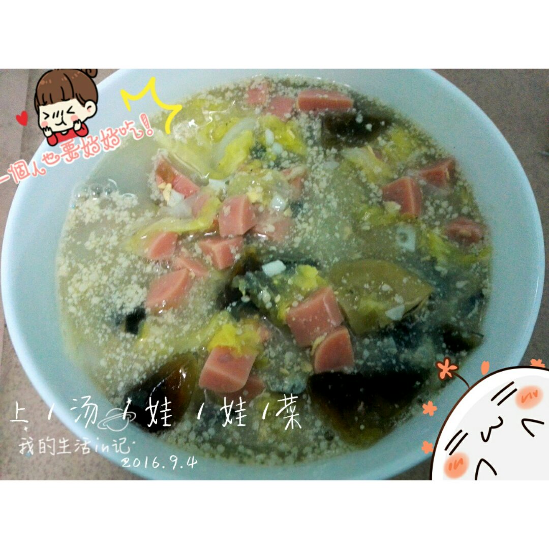 不晓得是不是淀粉放多了,后面的汤出现了很多白白的东西😂