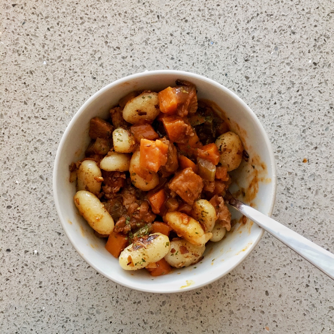 伊拉塞玛 做过 牛肋土豆球意面.Peposo with pan-fried gnocchi. 很好吃很好吃,牛肉都软烂软烂的!!(Tips: 牛肉大块一点,其他配菜尽量切碎一点,这样吃起来才很爽!另外,牛肉汤块会很咸,所以大概用一半的量剩下加水就很好啦,如果番茄酱有些酸的话可以用糖来提味哦!) 2016-09-06
