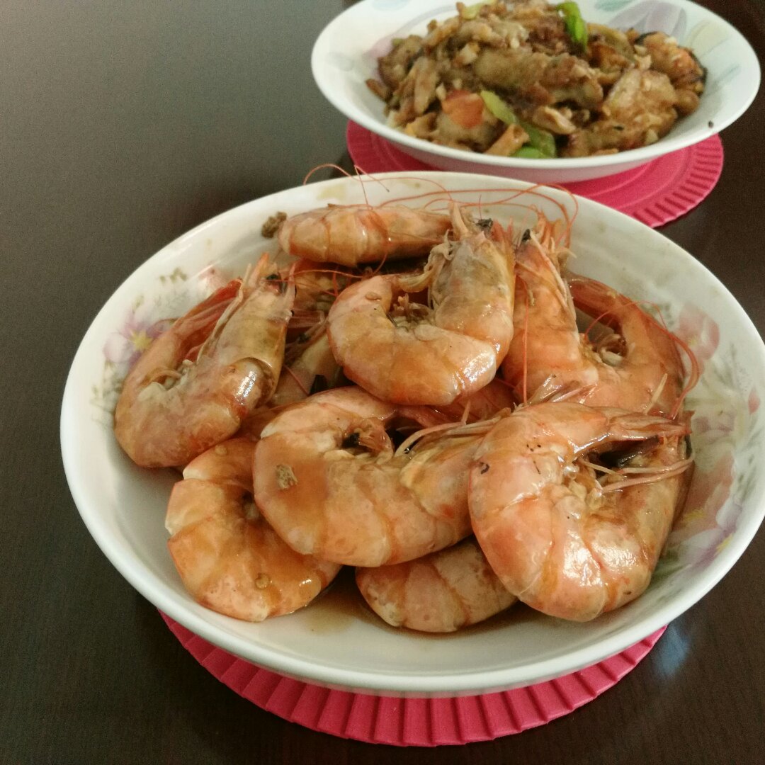 酱油水虾,酱油水汁调的不好,虾也做的有点老!下次还要改进!