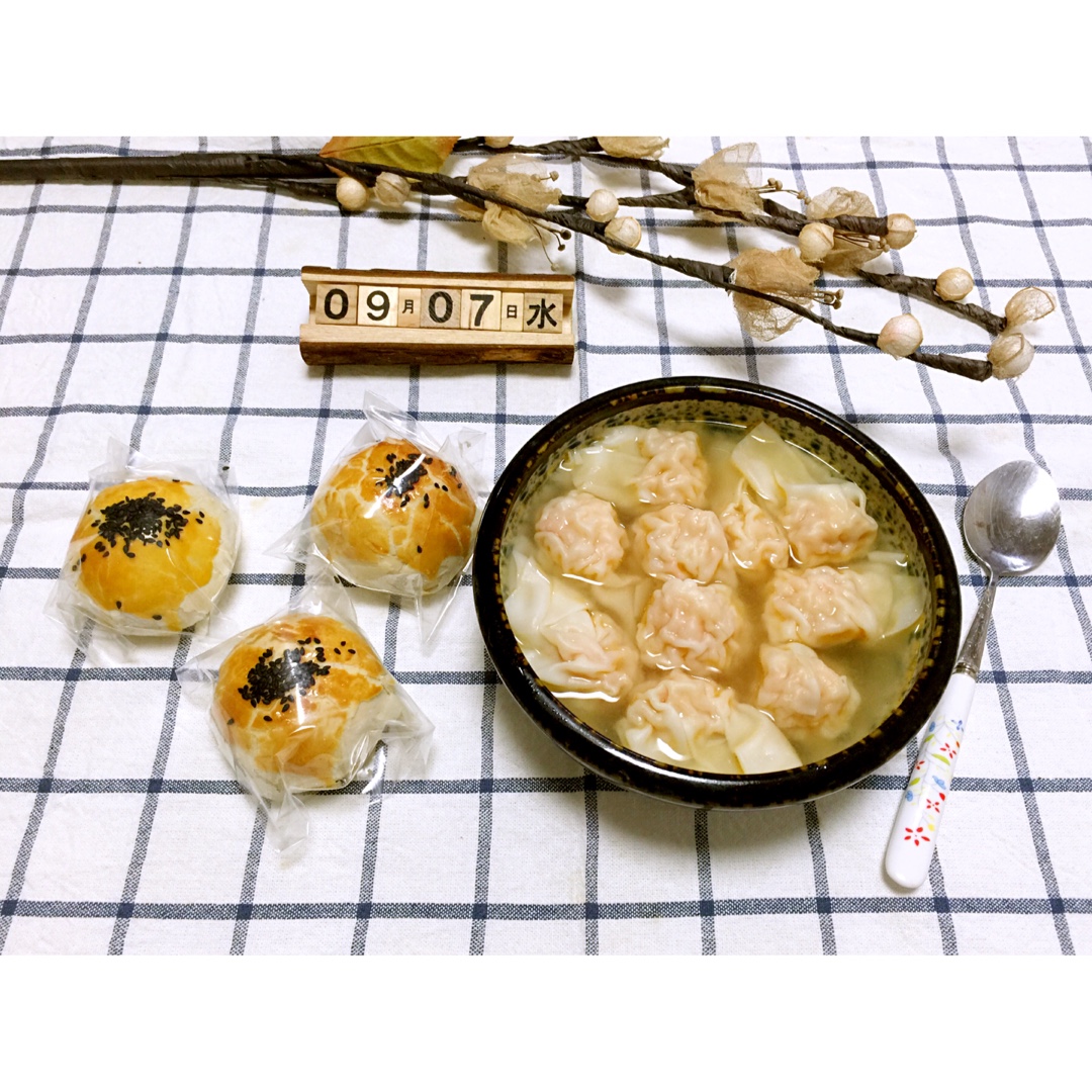 周三,多云,鲜虾大云吞、蛋黄酥。美美出门,秋风送爽,丹桂飘香,尽情享受这短暂的秋天吧!
