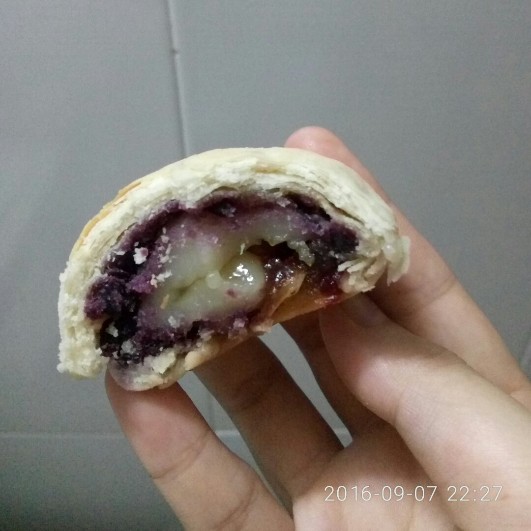 宅宅鱼 做过 晚餐•2016年9月11日 #晚餐•2016年9月11日##紫薯麻薯榴莲酥#之前做过两次,觉得味道太单调了,总想放点什么,无意看到角落太甜的榴莲糖,就包中间了,味道有层次,超赞,回味无穷,啦啦。。。。。(一颗糖可以分四个包,这次我分两个包,烤熟糖漏出来了) 2016-09-11