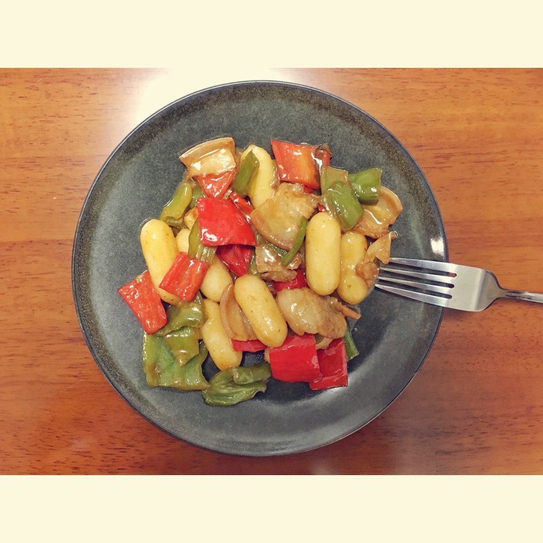 五花肉片炒芝士年糕