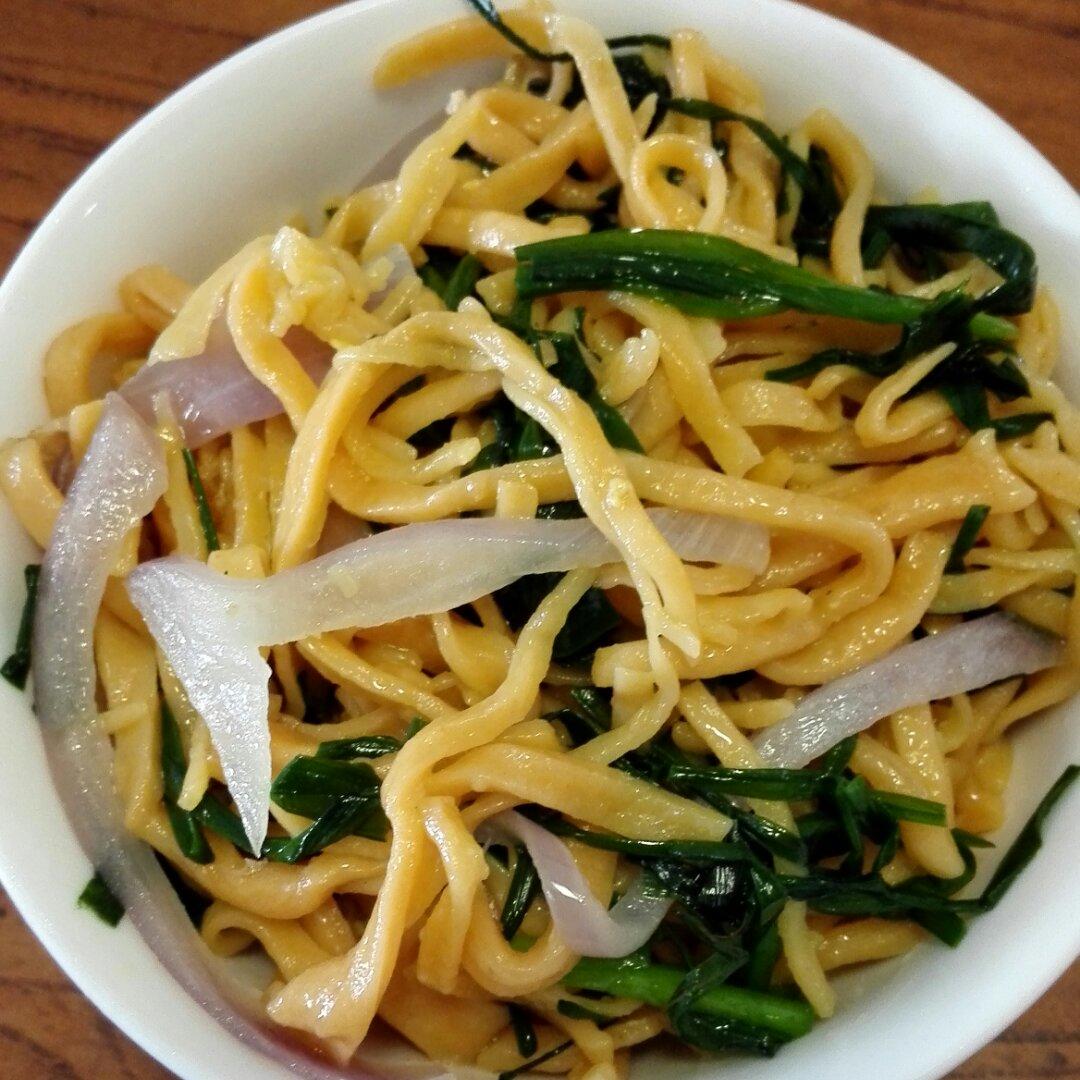手擀胡萝卜韭菜炒面
