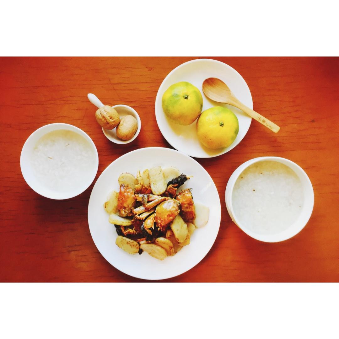 毛蟹炒年糕➕薏仁白粥