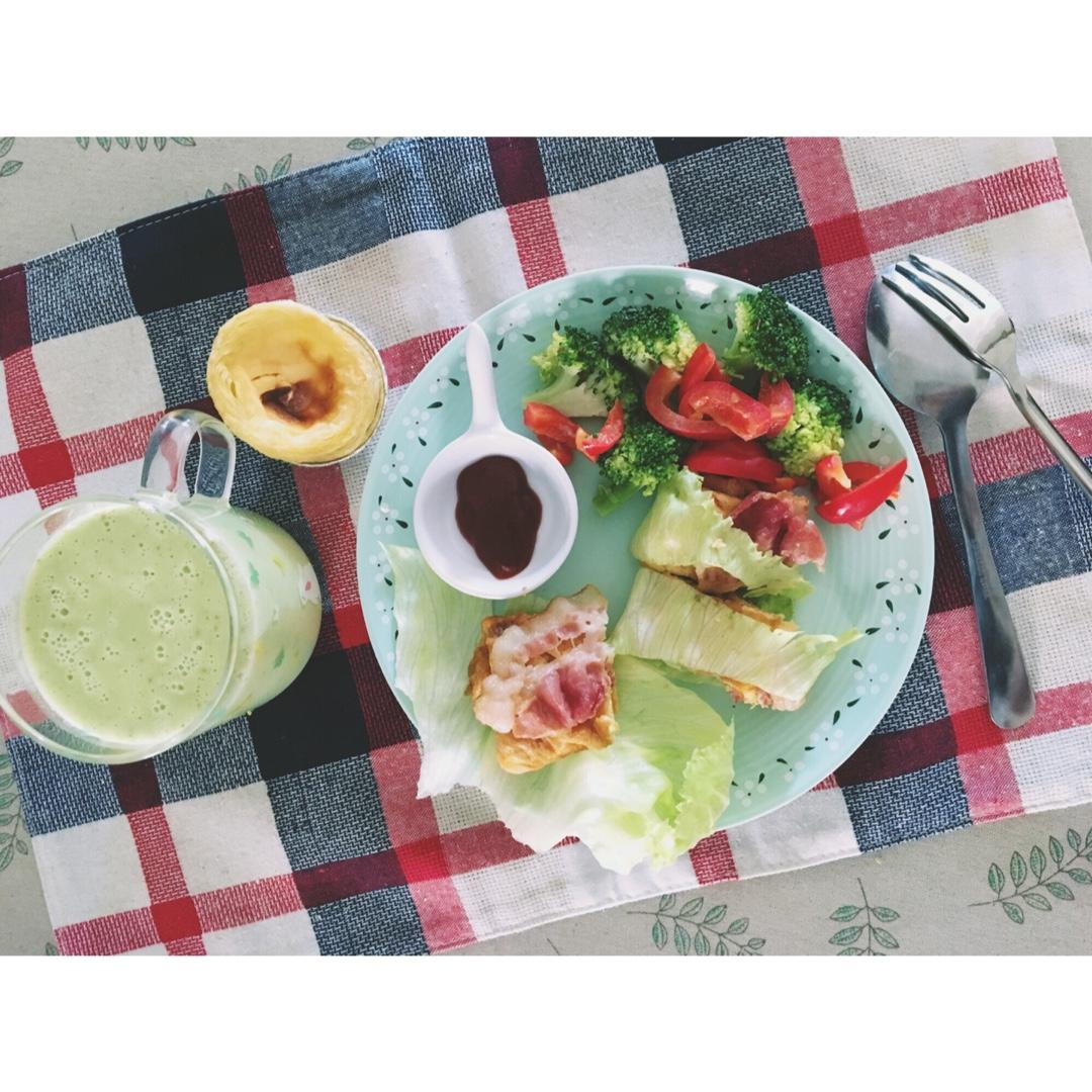 牛油果奶昔+芝士美心培根蛋烧+蛋挞